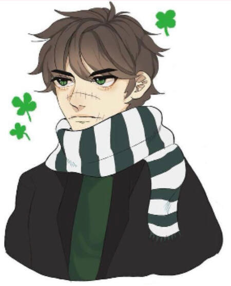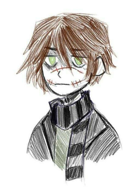 he's 6'2 and has green eyes and brown hair. he's scarred and freckled. he lost a finger and a leg as a result of the incident, he has a prosthetic. he uses lots of layers/long sleeves to cover up his scars. he usually wears clothing such as hoodies, coats, flannel jackets, and pants. his clothes are often monotone colors, sometimes accompanied by green. he also wears scarves, necklaces, and rings.